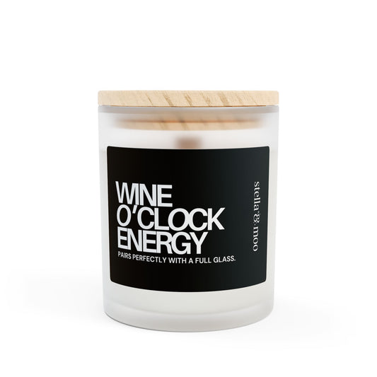 Wine O'Clock Energy Candle Frosted Glass (Hand Poured 11 oz)
