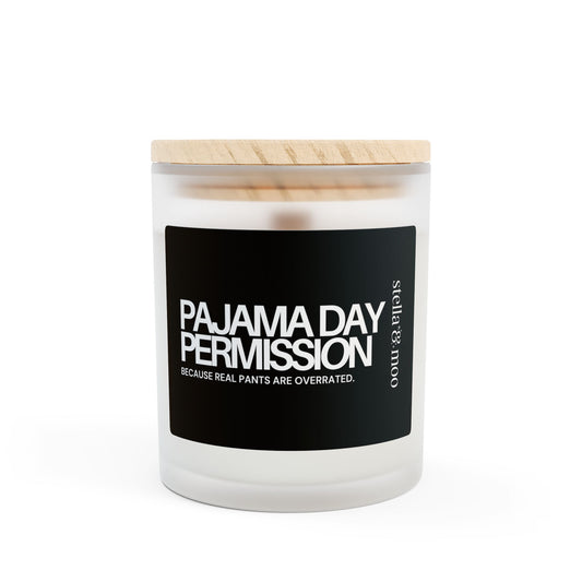Pajama Day Permission Candle Frosted Glass (Hand Poured 11 oz)